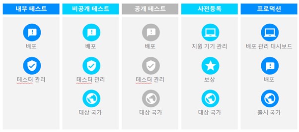 개발자는 구글플레이 개발자 콘솔을 통해 내부 테스트, 비공개 테스트, 공개 테스트, 프로덕션 등 앱 출시를 위한 절차를 진행할수 있다.