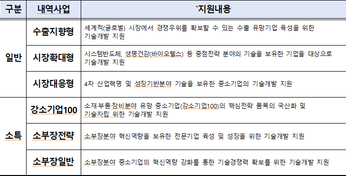 ▲기술개발혁신사업 지원내용 (출처: 중기부)
