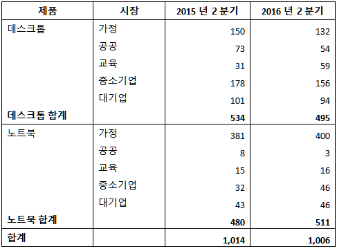 한국IDC, 2016년 2분기 국내 PC 출하량 100만대로 전년 수준 유지