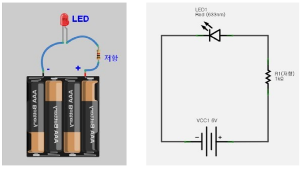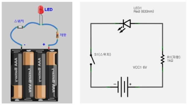간단한 외길 회로지만 빛을 발생시켜주는 일을 할 수있는 회로 입니다.