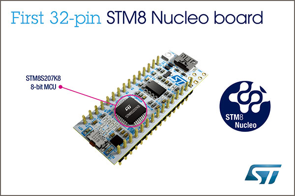 ST 마이크로일렉트로닉스가 처음으로 공급하는 STM8 누클레오32 보드 NUCLEO 8S207K8은 32핀 STM8S207K8 MCU를 포함하며 12개의 고전류 출력 및 다수의 캡처 컴페어(capture compare) 채널 등의 기능을 제공한다.