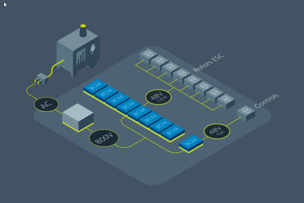 ▲DPI UMAR의 8개의 독립 로터에 전원을 공급하기 위해 UHV BCM이 배치되었다.[사진=바이코]