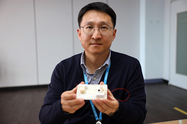 ▲ 증폭 장치를 들고 있는 생기원 조한철 박사 [사진=생기원]