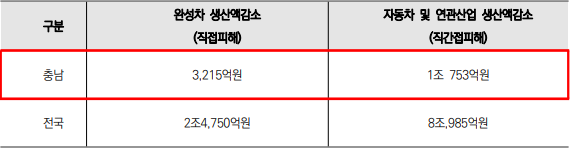 ▲자동차 생산차질로 인한 실현가능 손실액(자료 : 충남연구원)
