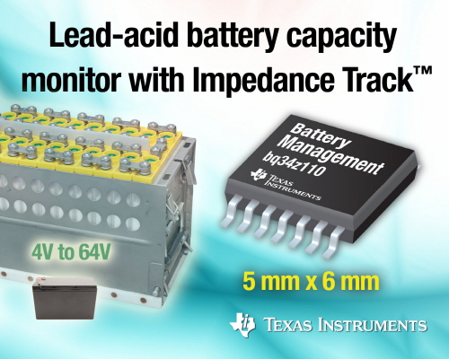 납축전지는 넓은 온도 범위의 환경에서 리튬 전지보다 우수한 동작 특성을 제공한다. 하지만 기존 현재 납축전지 설계는 배터리 용량을 정확하게 측정 및 보고하지 못한다. 이 때문에 대부분의 최종 사용자들이 혼란을 겪고 있으며, 때때로 시스템을 적절한 충전 상태로 유지하기 위해 보다 많은 배터리를 추가해야 한다. 임피던스 트랙 기술을 적용한 bq34z110 게이지는 사용자에게 배터리의 성능 상태(state-of-health) 및 충전 상태(state-of-charge)에 대한 정보를 정기적으로 제공하고 배터리의 전체 수명 기간 동안 최대 95%의 정확도로 용량 측정을 유지한다. 따라서 조기 셧다운을 방지하여 배터리와 완제품의 수명을 증대시킨다.