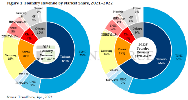 ▲2021년·2022년(전망치) 파운드리 시장 점유율 (자료-트렌드포스)