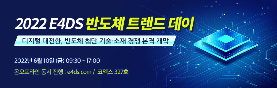 한편, 오는 10일 개최되는 2022 e4ds 반도체 트렌드 데이는 e4ds 플랫폼을 통해 실시간으로 온라인 생중계될 예정이며 자세한 정보는