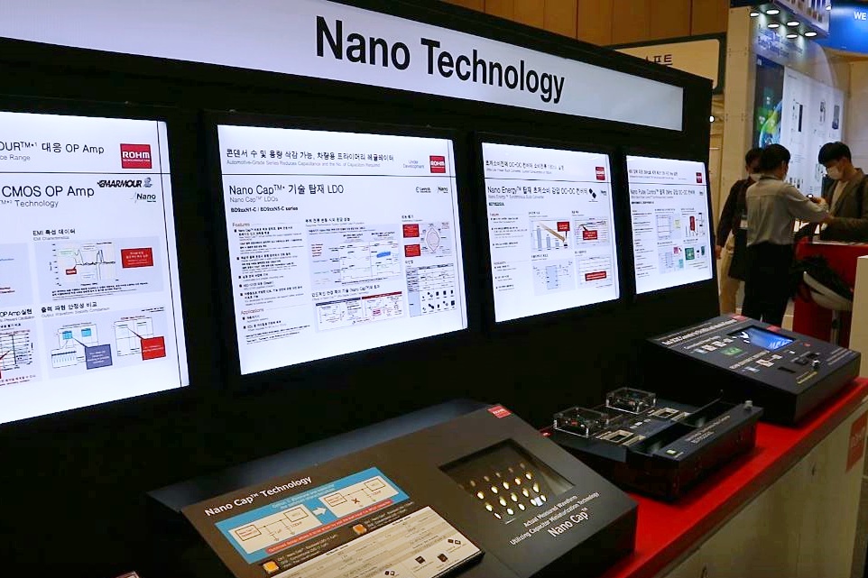 이날 전시회에 로옴이 참가해 각종 반도체 포트폴리오를 선보였다. 로옴은 나노 시리즈, 오토모티브 LSI 솔루션에서부터 모듈, 수동 디바이스까지 다양한 제품군을 전시했다.