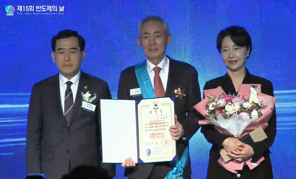 ▲제15회 반도체의 날에서 이용한 원익 회장이 금탑산업훈장 수훈하는 모습(사진-한국반도체산업협회)