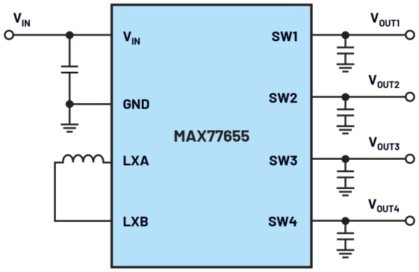 MAX77655, 단일 인덕터 사용 모든 채널 에너지공급
