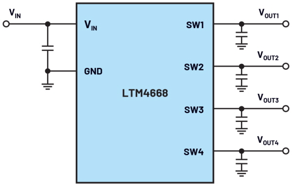 LTM4668, 인덕터 내장·4개 채널·높은 전력밀도 달성