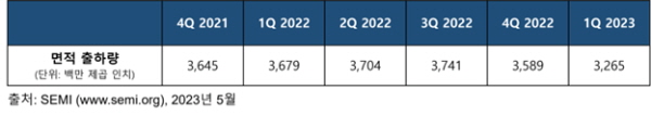2023년 1분기 메모리와 가전제품 수요 감소로 인해 실리콘 웨이퍼 출하량이 감소한 것으로 나타났다.