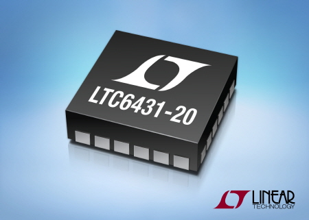 LTC6431-20은 4mm x 4mm QFN 패키지로 제공된다. 93mA 전원 전류에서 단일 5V 전원에서 구동되는 LTC6431-20은 저전력을 소모한다.