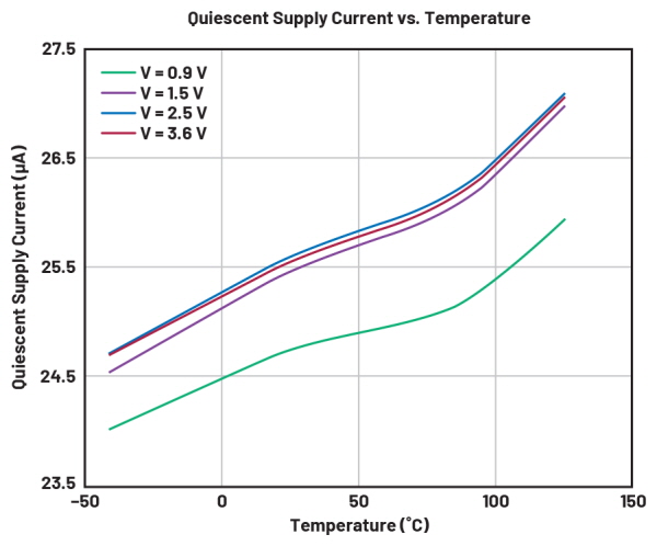 하지만 MAX40108 자체의 전류 소모는 VDD = 0.9V 및 TA = 25 C로 25.5 A에 불과하다(그림 4).