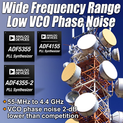 ADF5355와 ADF4355-2의 뛰어난 VCO 위상 잡음 성능은 아나로그디바이스의 특허 기술인 최신 SiGe 프로세서와 결합해 개발된 최신 VCO 토폴로지와 아키텍처를 통해 구현된다. 초광대역 RF 및 마이크로파 통신 애플리케이션에서 초저위상 잡음은 전체 시스템 오차율을 향상시키고 데이터 쓰루풋을 증가시켜 잡음 내성이 개선되고 대역폭 범위가 늘어나는 효과를 가져온다.