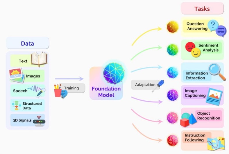 파운데이션 모델은 일반적으로 비지도형 기계 학습을 통해 방대한 양의 원시 데이터로 학습된 AI 신경망이다. 이는 인간과 유사한 언어를 이해하고 생성하도록 훈련된 일종의 인공지능 모델이다. 이제 컴퓨터가 인간처럼 단어와 문장의 문맥과 의미를 이해할 수 있도록 방대한 양의 책을 읽고 학습할 수 있는 라이브러리를 제공할 수 있게 됐다.