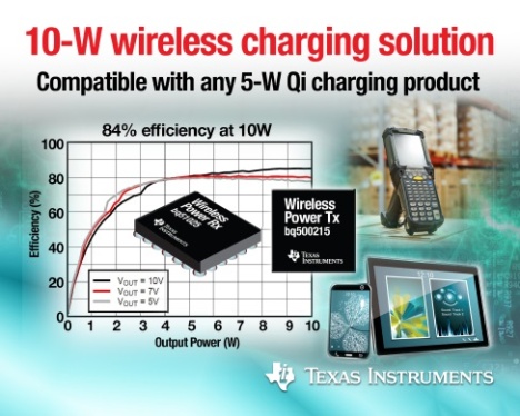 TI의 무선 전력 관리 제품을 통해 개발자들은 스마트폰, 태블릿 및 기타 휴대형 전자기기에 혁신적이고 효율적인 무선 충전 기능을 실현할 수 있을 뿐만 아니라, 단독 충전 패드부터 차량 및 가구에 내장되는 무선 전력 충전 트랜스미터를 설계할 수 있게 되었다. TI는 WPC의 Qi 표준을 지원하는 가장 광범위한 전원 IC 포트폴리오를 제공하며, A4WP(Alliance for Wireless Power)와 PMA(Power Matters Alliance)의 회원사이기도 하다.