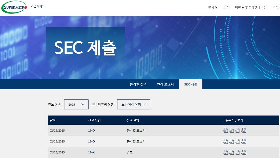 슈퍼마이크로컴퓨터(Super Micro Computer, SMCI 이하 슈퍼마이크로)가 지연된 2024년 연례보고서 10-K와 회계연도 2025년 1분기 및 2분기 보고서 10-Q 보고서를 미국 증권거래위원회(SEC)에 현지시간 25일 제출했다.