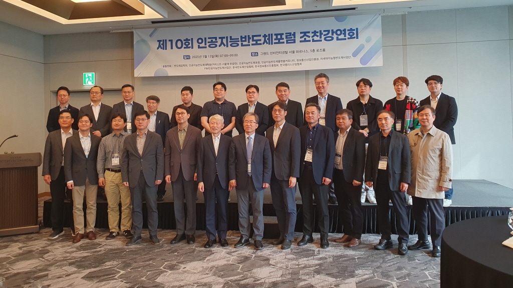 ▲제10회 인공지능반도체포럼 참석자들이 기념촬영을 하고 있다.
