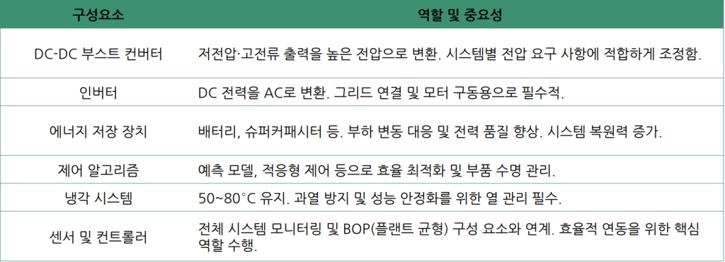 핵심은 수소와 산소의 전기화학적 반응을 통해 생성된 전력을 실제 애플리케이션에 맞게 변환·제어하는 전력 전자 장치다.