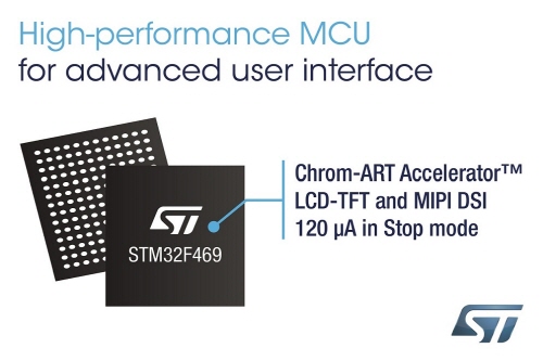 2015년 4월 8일, 서울 – 다양한 전자 애플리케이션에 걸쳐 고객들에게 기여하는 세계적인 반도체 회사 ST마이크로일렉트로닉스(STMicroelectronics, 이하 ST)가 새로운 마이크로컨트롤러 칩 STM32F469/479 제품 라인을 선보였다. 웨어러블 기기나 스마트 가전, 기타 사물인터넷 제품에서 스마트폰과 같은 직관적인 UI 구현에 필요한 고사양 그래픽 성능을 위해 설계된 제품이다. ST의 크롬-아트 액셀러레이터(Chrom-ART Accelerator™)[1]와 MIPI-DSI 기술[2]을 결합하여 최근 스마트폰이나 태블릿에서 널리 쓰이는 수준의 성능을 비용 증가나 배터리 수명 단축과 같은 불이익 없이 제공한다.