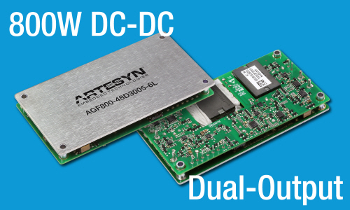 한국, 서울 [2015년 5월 12일] — Artesyn Embedded Technologies는 오늘 텔레콤과 서버 컴퓨팅 응용 분야에 높은 효율성과 탁월한 열적 성능을 제공하는 새로운 듀얼 출력800W dc-dc 컨버터인 AGF800-48D3005를 발표했다. 이 컨버터에는 각각 30 V와 5 V에서 작동하는 두 개의 출력이 탑재되어 있어 보조 모듈이 필요하지 않으므로 비용과 PCB 공간이 절약된다.