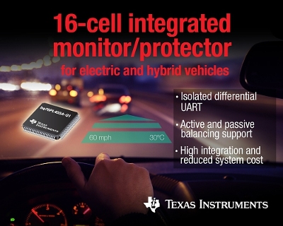 TI는 업계 최초로 한 번에 16개의 배터리 셀을 측정할 수 있는, 배터리 모니터 및 보호 회로가 통합된 IC를 출시한다고 밝혔다.