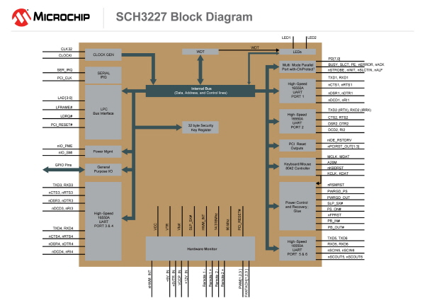 SCH322X 수퍼 I/O 제품군은 산업용 및 임베디드 애플리케이션용 제품을 결합해 사용자에게 제공한다. 각 제품은 직렬 포트, 병렬 포트, PS/2 그리고 유연한 범용 입/출력(GPIO) 기능과 세계 최고 수준의 온도 및 전압 모니터링 기능을 결합한 다양한 기능 세트를 포함하고 있어, 보다 비용 효율적으로 산업용 애플리케이션을 설계할 수 있다. 이 SCH322X 제품군은 공간 효율적인 BGA 패키지로 제공되므로 최소화된 보드 설계가 가능하다.