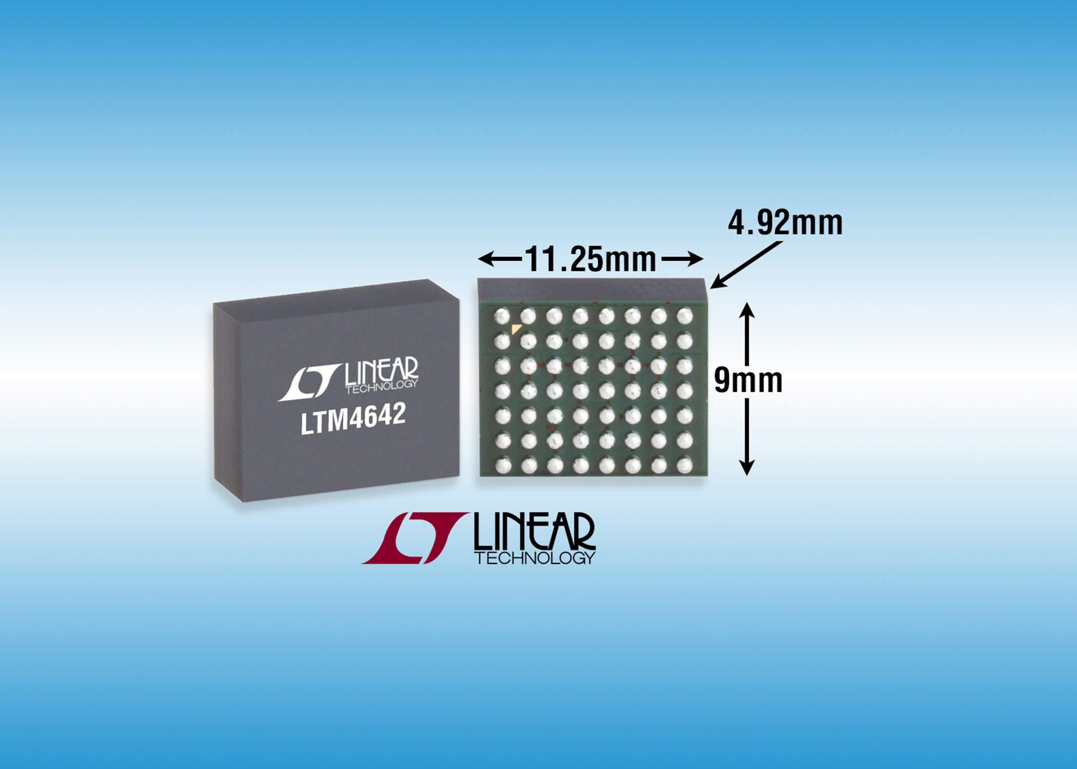 리니어 테크놀로지 코리아(Linear Technology Korea)는 콤팩트형 9mm x 11.25mm x 4.92mm BGA 패키지인 듀얼 4A 또는 단일 8A 스텝다운 µModule LTM4642를 출시한다고 밝혔다.