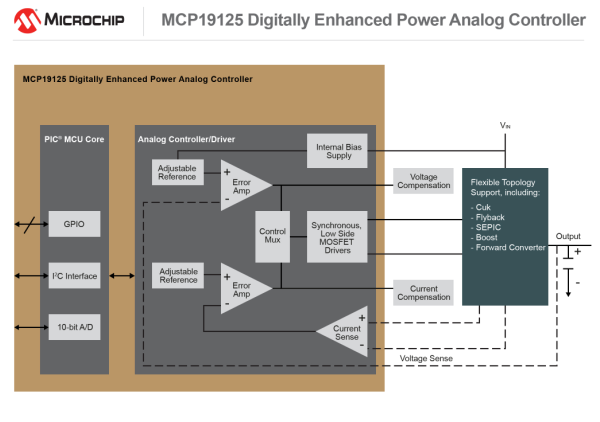 MCP19124/5, 독립적인 전압 및 전류 제어 루프와 성능 파라미터 풀 세트 내장