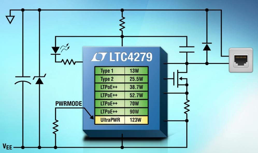 LTC4279는 각종 PD(powered devices)에 전력을 공급하는 역할을 한다. 여기에는 모든 레거시(<13W), IEEE 802.3at Type 1(13W) 및 Type 2(25.5W) PD, 리니어의 독자적인 LTPoE++(최대 90W) 및 맞춤형(<123W) PD가 포함된다. 2쌍 및 4쌍 출력 토폴로지뿐만 아니라 단일 시그니처 및 듀얼 시그니처 아키텍처가 지원된다.