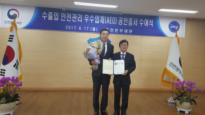 한국몰렉스가 수출입 안전관리 우수 업체 (Authorized Economic Operator; AEO)로 인정되어 천세관에서 AEO 공인 인증서를 정식으로 수여 받았다고 밝혔다.