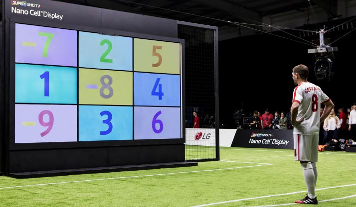LG전자는 영국 축구스타들의 슈팅 대결을 통해 LG전자의 프리미엄 LCD TV인 LG 나노셀 TV와 일반 LCD TV를 비교해 시야각 성능을 부각했다. 선수로는 영국 축구의 전설이자 ‘캡틴 제라드’로 불리는 스티븐 제라드(Steven Gerrard)와 영국 프리미어리그 최고의 미드필더로 활약중인 아담 랄라나(Adam Lallana)가 참여했다.