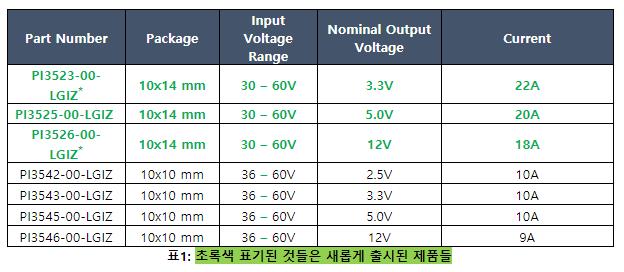 PI352x 제품군은 이전에 출시된 10A 48VIN PI354x제품군을 보완하는 20A 솔루션으로서 48V Direct-to-PoL 애플리케이션에 확장이 가능한 전원 옵션을 제공한다.