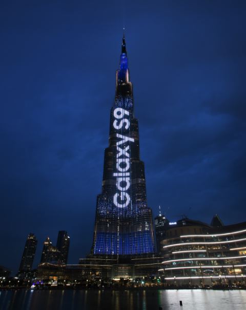 이번 '갤럭시 S9'·'갤럭시S9+' 광고는 부르즈 칼리파 외벽에 설치된 LED 파사드를 통해 이틀간 다섯 차례에 걸쳐 진행됐다.