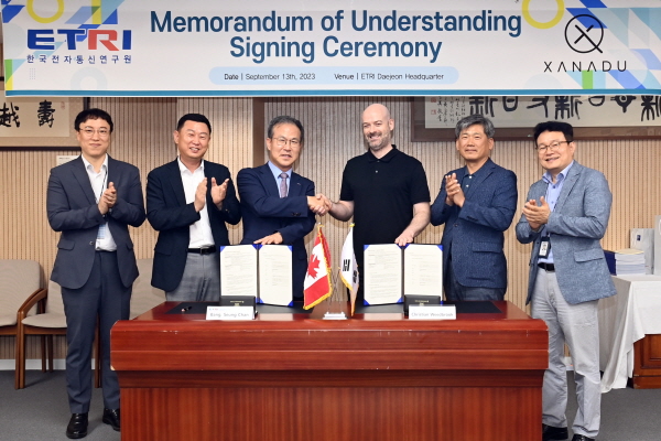 한국전자통신연구원(ETRI)이 캐나다의 광기반 양자컴퓨팅 관련 세계적 기업인 자나두(Xanadu)와 양자컴퓨팅 연구를 위해 힘을 모은다.