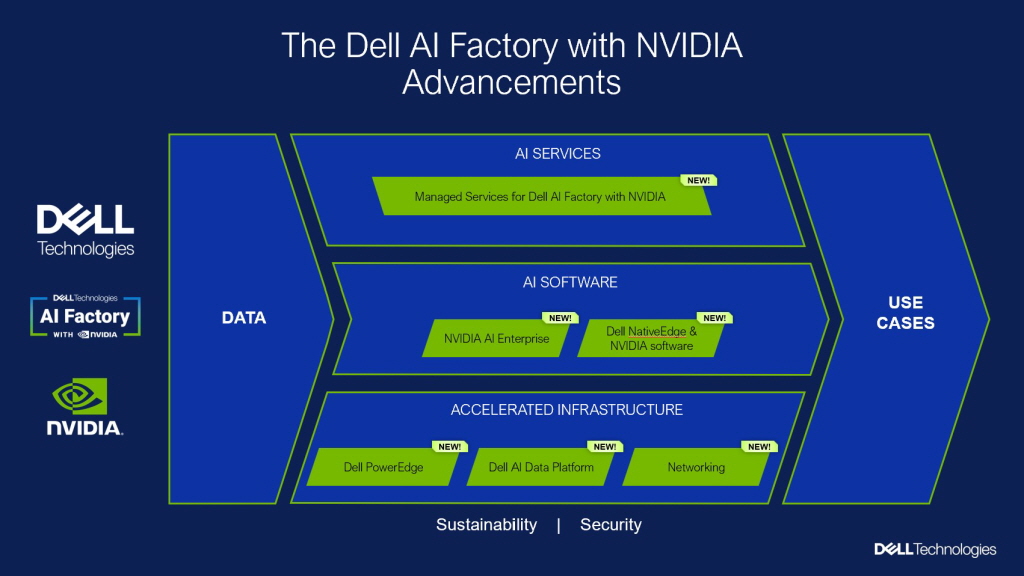델 테크놀로지스(Dell Technologies)가 ‘델 테크놀로지스 월드 2025’(DTW 2025)에서 엔비디아와 협력해 ‘엔비디아 기반 델 AI 팩토리(Dell AI Factory with NVIDIA)’의 업그레이드된 인프라와 서비스를 공개하며, 컴퓨터 및 데이터 처리 가속화를 위한 혁신을 주도하고, 운영 간소화 및 AI 구축의 모든 단계에서 더 빠른 성과를 내게끔 지원한다.