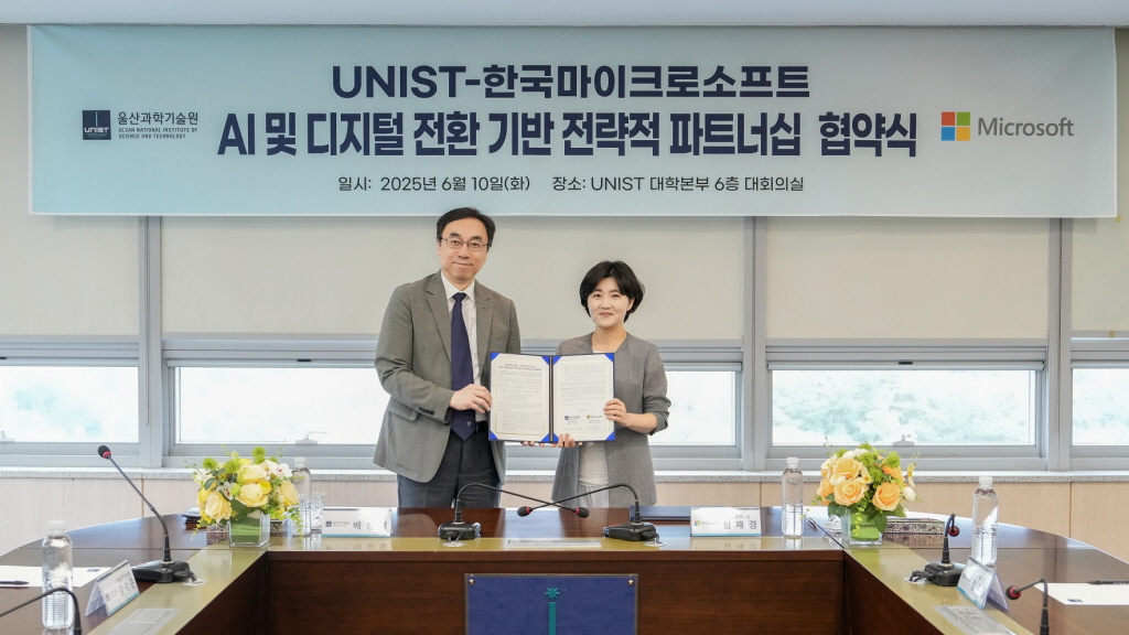UNIST는 10일 대학본부에서 한국마이크로소프트(MS)와 ‘AI 및 디지털 전환 기반 전략적 파트너십’ 협약을 맺었다.