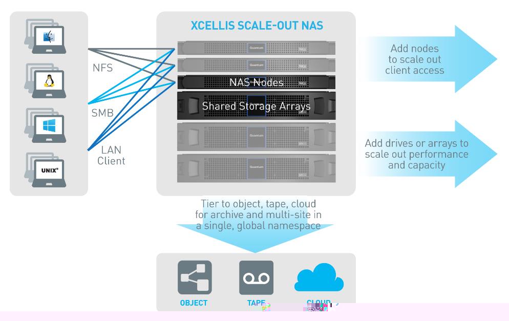 퀀텀은 유연한 확장이 가능한 워크플로우 공유 NAS 스토리지 어플라이언스인 ‘엑셀리스 스케일 아웃 NAS(Xcellis Scale-out NAS)’를 발표했다. ‘엑셀리스 스케일 아웃 NAS(Xcellis Scale-out NAS)’는 지속적인 데이터 증가에 원활히 대응할 수 있도록 비용효율적인 확장성을 제공하며, 강력한 엔터프라이즈 스케일아웃 NAS 기능 및 관리 기능을 제공한다.