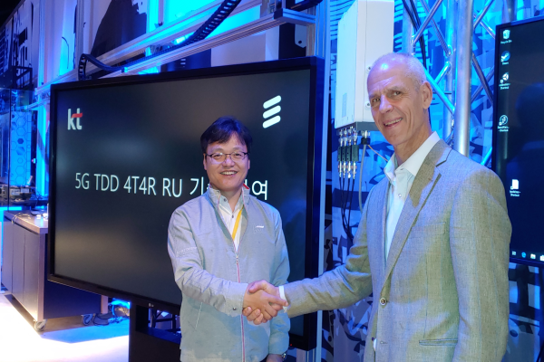 KT는 13일, 스웨덴 시스타(Kista) 에릭슨 연구소에서 에릭슨과 함께 개발한 5G TDD(Time Division Duplex) 4T4R RU(Remote Unit) 장비의 기술 시연을 진행하고, 4T4R 기지국을 KT 5G 상용망에 적용하는데 성공했다고 밝혔다.