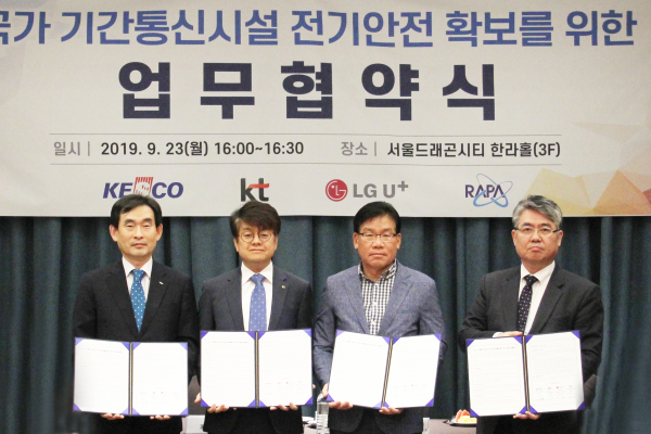 한국전기안전공사(KESCO), 한국전파진흥협회(RAPA), KT, LG유플러스가 25일, 국가 기간통신시설 전기안전 확보를 위한 업무협약을 체결했다.