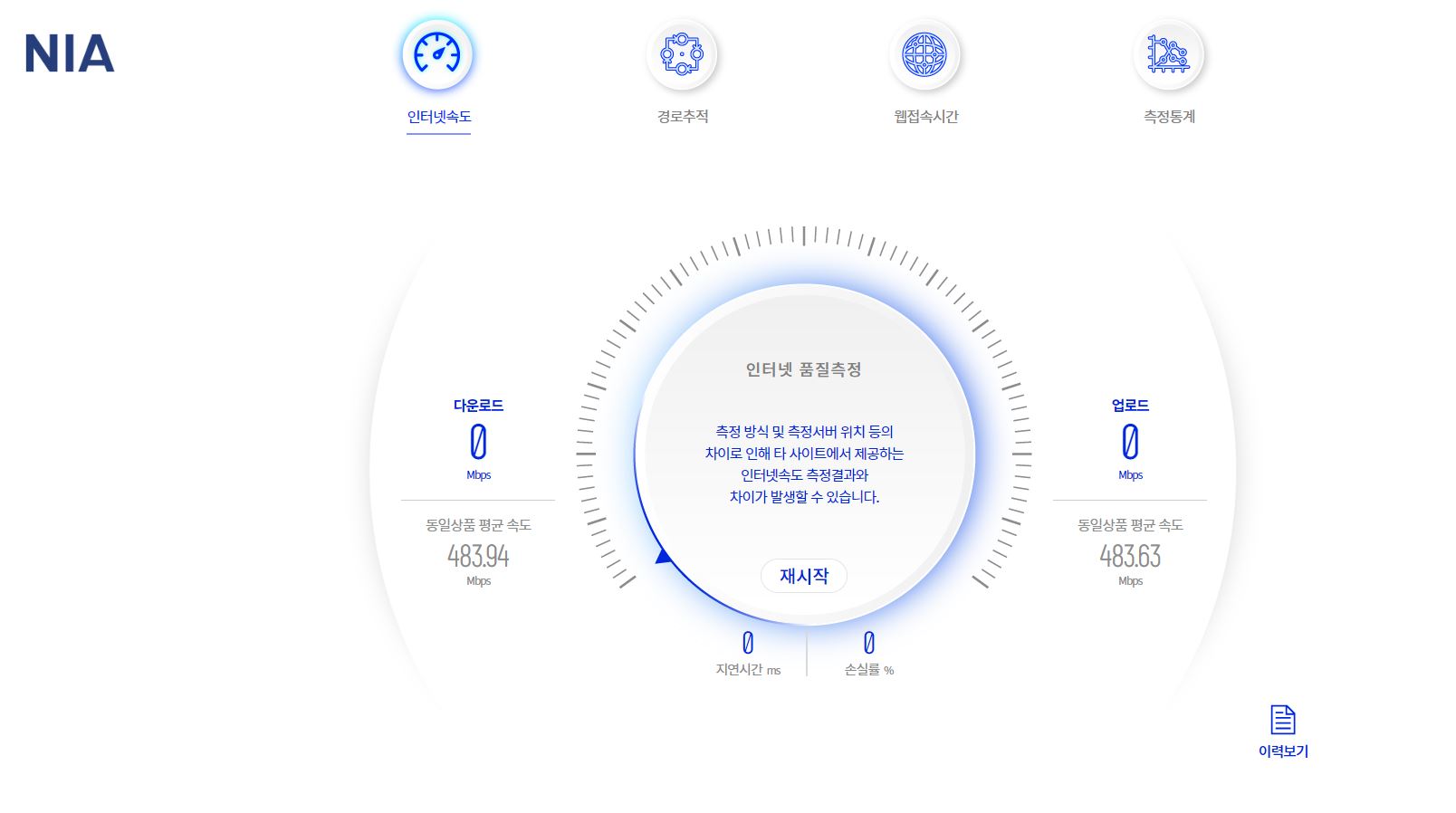 ▲한국지능정보사회진흥원(NIA) 인터넷 속도 측정