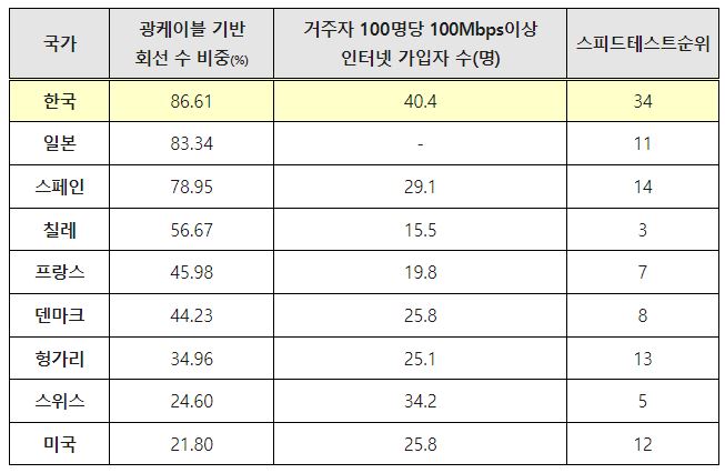 과기부는 반박과 함께 OECD 통계(21.12월)에서 우리나라 거주자 100명당 40명은 100Mbps급 이상 인터넷 가입자며, 전체 유선인터넷 회선 수 대비 광케이블 기반 회선 수 비중이 86.61%로 세계에서 가장 높은 수준임을 제시했다. 일본(83.34%), 스페인(78.95%)가 그 뒤를 이었다.