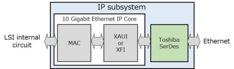 도시바 코퍼레이션 산하 반도체/스토리지 제품 컴퍼니가 첨단 통신 솔루션 제공업체인 모어댄아이피(MoreThanIP)와 공동 개발한 IP 서브시스템을 제공한다고 발표했다. 이 솔루션은 ASIC, FFSA™를 포함한 커스텀 LSI(custom LSI) 플랫폼 상의 10기가비트 이더넷 MAC(media access controller), PCS(physical coding sublayer), 고속 SerDes(Serializer Deserializer)로 이뤄져 있다.