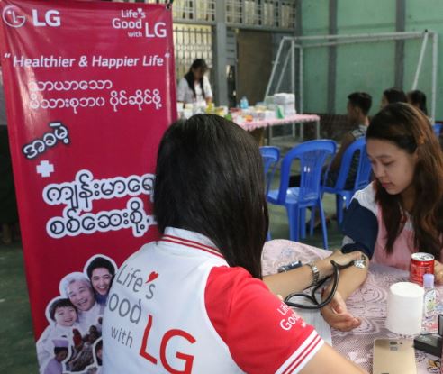 LG전자는 21일부터 22일까지 미얀마 낙후지역인 파테인(Pathein)에 위치한 종합경기장에 이동진료소를 열고, 5,000여 명의 주민들을 무료로 진료했다.