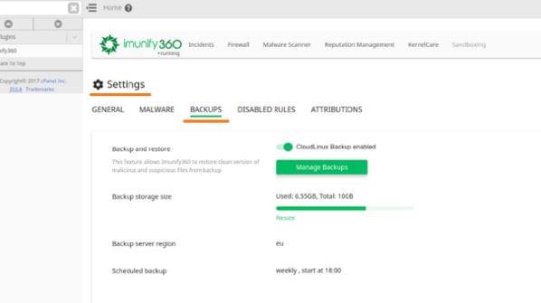 이뮤니파이360는 제로데이 공격, 분산 형 무차별 대입공격(brute force attacks) 등 웹 서버를 타깃으로 시행되는 각종 공격으로부터 리눅스 웹 서버를 안전하게 보호한다. 고객들은 전체 디스크에 대한 백업을 설정하고 감염되거나 손상된 파일, 폴더, 볼륨, 디스크, 혹은 전체 시스템까지도 복구할 수 있다. 클라우드리눅스 백업 이뮤니파이360은 전용 서버는 물론 VPS, 공유 서버 등 다양한 환경에서 작동 가능하다.