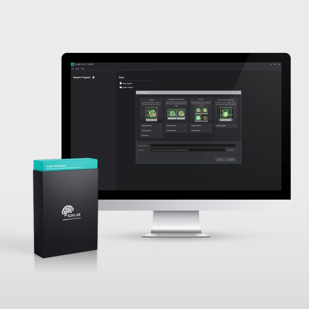 수아킷은 딥 러닝 기반의 머신비전 불량 검사 소프트웨어로, 기존의 머신 비전 검사로는 검출하지 못했던 비정형·불규칙적인 불량을 딥 러닝을 활용하여 검출할 수 있다. 디스플레이·반도체·태양광 등 전기·전자 산업군뿐만 아니라 자동차 및 식·음료 산업에 이르기까지 다양한 산업군의 제품 검사에 모두 적용 가능하다.