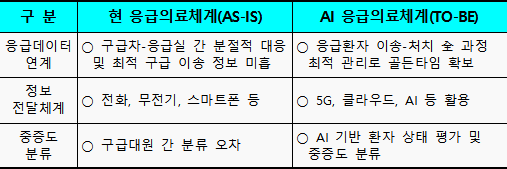▲ AI 응급의료시스템 도입 전후 비교 [표=과기정통부]