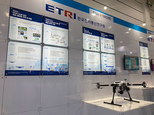 ▲ETRI 부스에 전시된 드론 및 연구 성과