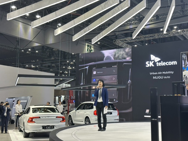▲서울모빌리티쇼 프레스데이 발표를 진행한 SKT 유영미 상무